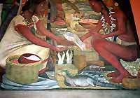 古都ティノティトランでの人々の暮らしぶりから、スペインに侵略され、強奪・殺戮されるシーン、そしてメキシコ革命へと歴史の流れを力強いタッチで克明に描いてある。