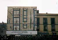 タマヨの壁画があるという自治高校(?)に入る。ここは祝日でもしっかり入場料10ペソをとった。2階の踊り場のようなところに、集合写真を等身大に伸ばしたパネルが置いてあり、ディエゴ・リベラやフリーダ・カーロをはじめ、同時代の芸術家たちが勢ぞろいしている。さっきの美術館で気になったアンヘルもいた。やはりとても若い。