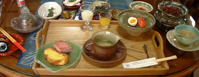 宿泊は駄目でも、朝食だけの予約はできます。ここの朝食は薬膳料理で、20品以上(食品数にして50品目以上だとか)がずらっとテーブルの上に並んだ様子は圧巻です。ひと皿の量が少なく、ほとんどが野菜なので、全部平らげてもいやな満腹感はありません。気のせいか、体の内側からきれいになったような感じ。これで3000円を安いと思うか、高いと思うかは人それぞれでしょうが。