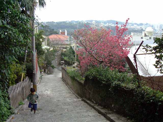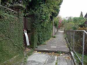 とはいうものの、旅行者として歩くには実に気分がよく、ときどき横道にそれて寄り道したりしながらいい気になって下っていきました。 土地勘のある人なら坂の下から帰るバスをみつけるところでしょうが、旅行者でなおかつ方向音痴の私は仕方なく来た道を戻りました。が、これがキツイ! あんなに素敵だった坂道が、今では難行苦行の難所となり、風が冷たくて寒い日だったのに上まで登ったときには汗ばんでいました。 |
