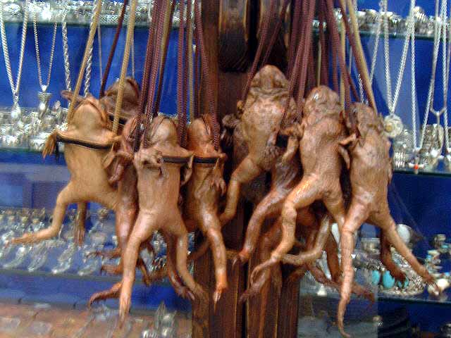 この下の床に置かれた籠の中には、しゃがんだ形の大きな目がにらんでいるような蛙の小銭入れが山盛りになっていました。使いたくない・・・