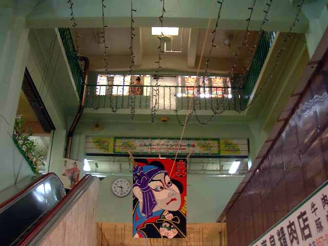 旧正月の前日だったからか、はたまたいつもなのか、市場中央の吹き抜け部分には大きな凧が飾られていました。 市場の規模はガイドブックなどを読んで想像していたよりはずっと小さくて拍子抜け。東南アジアの市場を見慣れていると、ちょっとやそっとでは驚かなくなるのが悲しいですね。 でも、自分が住んでいる立場だったら、このくらいの店の数のほうが、選ぶのも歩くのも負担にならなくていいです。