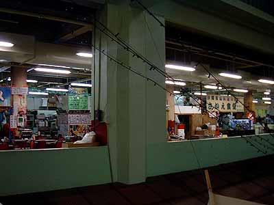 どのガイドブックにも載っていますが、市場の2階は食堂街になっていて、市場で買った魚をプラス500円で調理してくれます。もちろん一般的な沖縄料理はすべてそろっていますし、中華料理も丼物も、いわゆる「食堂」にあるようなものはたいていそろっています。