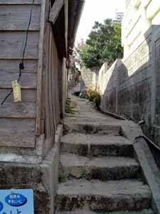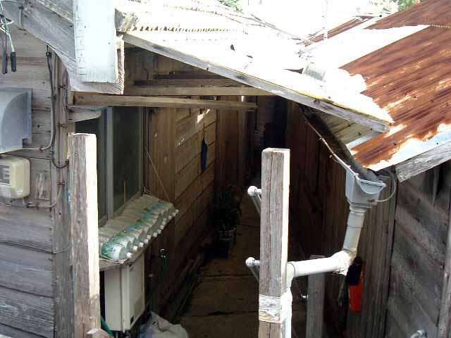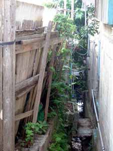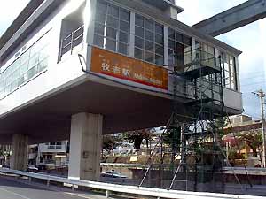 2004年にはモノレールが完成するのだそうで、牧志にはすでに駅舎ができていました。まだ道路から上がっていく階段がないので、とても奇妙に見えます。このあたりの川沿いには民家が多く、中には川の上に板を渡して作ってあるんじゃないかと思えるような家もあって、つい覗きこんでしまいます。