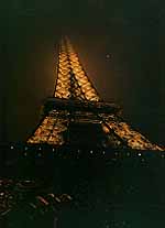 パリの田園調布(!)と呼ばれるパッシー地区を通り、エッフェル搭にたどりつきます。当然登るのですが、混んでるんですよ、これが。 てっぺんまで登るほうのエレベーターは長蛇の列。雨も降り始めて、とても待ってはいられないので、途中の展望台までのチケットを買いました。展望台にはお決まりの望遠鏡があって、それぞれにそこから見える地域の地図がついています。でもまあ、これは東京タワーと同じで、実際に搭の上から見るよりも、周囲から搭を見るほうがきれいなのね。しかも夜。特にこの年からエッフェル搭のライトアップ方式が変わって、下から照らすようになったから、シャイヨー宮のほうから眺めた景色は抜群でした。