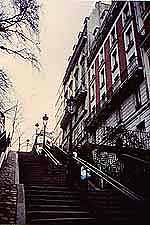 帰りは反対側の階段を降りて行ったのだけど、こっちのほうがいわゆるモンマルトルの風情があるみたい。ただし、ジプシーの親子がいて、なにやら言いながら体に触ろうとするので、掏られては大変と、あわてて逃げました。