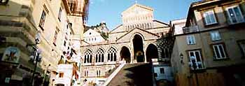 アマルフィは、アラブ・ノルマン風のドゥオーモのあるこじんまりとした美しい街。山腹を利用して作られているから、坂が多く、家と家とが階段で複雑につながっている。知らずに入りこんでしまうと、どちらの方向に進んでいるのかわからなくなるのだ。ギリシャの街がそうだと、Wが言っていた。