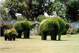 バン・パイン離宮の庭です。今にも散歩に出かけそうな象の親子。