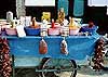 私の頭の中では、メディナとスークがごっちゃになっていたのだが、どうやらメディナは旧市街、スークは市場のことらしい。ただ、旧市街にはたいていスークがあるので、同じ意味で使われることが多いようだ。 バスを降りる前にセンセが、「あのぉ、メディナというのは危険じゃないんでしょうかぁっ!」とモグラ氏に聞いた。ちなみに彼女の声はすごく大きい。 「危険か危険でないか、と聞かれますと、これはまあ、わたくし自身の保身を考えますれば、それはもう『危険です! 危ないからやめましょう!』と答えるべきなんでしょう。しかしながら、ここはですね、OWN RISKというふうにお考えいただけませんか・・・」 「ある人がニューヨークに言ったときのこと。ホテルのボーイふたりに、ダウンタウンに行こうと思うのだが、行っても安全だろうか、と聞いたんです。ひとりのボーイは"OF COURSE NOT" と答え、もうひとりは"WHY NOT "と答えたそうです。ことほどさように、危険に対する認識は人によってマチマチなわけで。第一、外国がそんなに怖いなら、4畳半で炬燵に入ってミカンでも食べてればいいんですよ」 「ま、だいじょうぶでしょう! いざとなったら、わたくしが会社やめりゃいいんですから」 (^〜^;)ゞナンダカナア というわけで、オウンリスクをそれぞれに抱えた一行は、おずおずと固まってメディナに入っていったのであった。 が、いったん中に入ってしまえばこっちのもの。 初めて見るスークは刺激がいっぱい。確かにここは色彩と香りの宝庫だ。赤ピーマンみたいに大きなとうがらしを乾燥させて、紐でつないだものが七夕飾りのようにぶら下がっている。青、ピンク、黄色と色とりどりのプラスティックの箱にはあふれんばかりのスパイス類。日本では高価なサフランも、ここではひと山いくらだ。決めた。お土産はこれだ! キシュバルを買おうと1軒の店に入る。実際に着てみるとかなり重い。しかも脱脂していないウールだから臭い。ちょっとひるんで値段を聞くと55ディナール! さらにひるむ。おまけに私が欲しい色は今店にないから、どこぞから取り寄せて、私がその晩泊まるホテルまで送ると言う。その運賃が10ディナール。 「え〜っ、両方で65ディナールだなんて、めちゃくちゃ高いやんけ」←なぜか値切ろうとすると関西風になってしまう(^_^;) 「33でどう?」と言ったら「40」と来た。でも、よく考えてみたら、こんなの東京で着て歩いたら見せ物だわ。 「ごめんね、おじさん。やっぱりやめたわ」と、追いすがるオヤジを振りきって脱出した。 スーク買物行は続く。 |