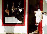なにしろ切り落としたばかりの牛の首がゆらゆらとぶらさがっている。