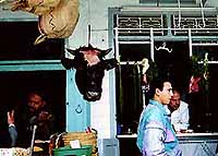 だって、妙にあきらめきったような目つきで、舌をべろ〜んと垂らしているんだもの。切り口から血がしたたってたりするのもある。まあでも、日本で魚屋の店先に鰤のアラなんか積み上げてあるのも、異文化圏の人たちから見れば同じように不気味なんだろう。