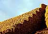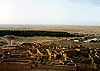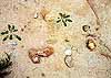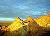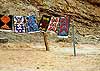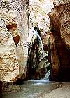 さて、いつまでも固まってはいられないので、チェビカに向けて出発する。 チェビカは、観光局のパンフレットによると、マウンテン・オアシスというものらしい。ふつうオアシスは、砂漠の中の平地にナツメヤシの林に囲まれてあるものだが、このチェビカは、険しい岩山の山腹に街がある。 ランドローバーは、山の上の茶店の前で止まった。ヤシの葉っぱと丸太だけで作った掘立小屋だが、生意気に「カフェ・ド・オアシス」などと書いた看板を掲げている。なるほど、店の中には仲間同士らしい男たちが朝っぱらからお茶を飲んで油を売っていた。 「じゃあ、私たちもここでお茶でも飲んで、見晴らしを楽しみましょう」と思ったら大間違いだった。ラサドとモグラ氏は、「こっちですよ」とひと声かけると、さっさと近くの山に登り始める。 「え〜っ、山なんか登るの?」 が、難色を示したのは私だけだった。みんなは平気な顔をしてついていくではないか。最長老の77歳のおじいさんまで元気に登っていく。 女の意地と、”向こうに何があるんだろう”という好奇心とを餌に、しぶしぶとついていく私であった。 ようやくのことでたどりついたのは、オアシスの源とも言うべき泉だった。岩と岩の隙間から湧き出した水が、細い流れになって山の間を縫うように流れていく。これがこのあたりの土地を潤し、植物を育てているわけだ。なんとなく感動。水に手を入れてみたら、お湯のように温かかった。 また、あの山を登るのはやだなあと思っていたら、帰りは近道があって、なんということなく元の茶店まで戻れてしまった。 (^.^;)? ひょっとして、行きだってこっちの道をくれば楽だったんじゃないかい? まあ、あれも1種の観光サービスなのかな。 茶店の向かいにある土産物屋で、ターバンの巻き方の講習会が始まった。例の白と黒、あるいは白と赤のスカーフを使って、店のオヤジがとても器用にみんなの頭を包んでみせる。もちろん、スカーフを売るのが目的だ。 センセも母娘もゲンジ(例の源氏物語風美女の30代)も買ったが、3人娘はなかなかしぶとかった。さすが関西の底力、いい加減にすればぁ、と私なんかは思ってしまうところまで値切る値切る。 結局、どうしても折り合いがつかず、お互いが「もう、ええわ」という結果に終わってしまった。日本人くみしやすしとタカをくくっていたオヤジには、インパクトあったかもしれない。 次に行った「チュニジアのグランドキャニオン」には、ヨーロッパからの観光客が群れを成していた。ランドローバーを雇って、このあたりを冒険旅行(?)して歩くのが、あちらの観光客の流儀らしい。きのうのホテルが、こんな季節にもかかわらず満員だったのも、ランドローバーで出かけるときに便利なアクセス・ポイントだから、というのが理由らしい。
