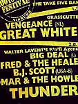 彼の子供らしい4〜5歳の男の子と女の子が出てきて、珍しそうに私を見ていたが、聞きなれない英語が面白いのか「キャア! プリーズだって、プリーズ!」とか「ラージだよ!ラージだよ」とか叫んで走り回っている。女の子のほうを捕まえて、わざと「 HELLO! WHAT IS YOUR NAME?」と聞いてあげると、興奮極限状態になってしまった(^^;)カラカウンジャナイッテ。 「はい6枚ね。明日、会場で買うと1枚600フランだけど、きょうは前売りだから500でいいよ」ラッキー! チケット代1400フラン(これも翌日見たら当日券は1600フランだった)とTシャツ代を払い、腕いっぱいにTシャツを抱えて「ありがとう。じゃあ、また」と挨拶した。話してるうちに思い出した。この人、ブルース・ディッキンソンそっくり。でも、子供はふたりともすごく可愛い。←どういう意味や(^_^;)ゞ とりあえず会場の場所はわかったし、チケットも確保したので安心してホテルに帰る。確かに徒歩5分だわ。戻るときだらだら坂を登るのがちときついが、いざとなったらトイレはホテルに戻ればいいとわかると、とても安心してしまった。コンサートがどんなに遅く終わっても帰りの心配もないし。