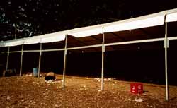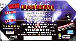 ポンチョを着て、誰もいない最前列にしばらく立っていたが、あまりにも馬鹿みたいなので、楽屋口の前に座っているセキュリティの所に行き、パラソルの下に入れてもらった。少し立っていると「どうしてこんなとこにいるの? あっちのテントの下なら雨にも濡れないし、人もたくさんいてあったかいのに」とセキュリティが聞く。「うん。わかってるんだけど最前をキープしたいもので・・・」「今からキープしてなくてもどうせみんな前に出たり後ろに引っ込んだりしょっちゅう動くよ」「そうなんだけどねえ・・・」 でも、確かに雨の中、原っぱに出てる人なんてひとりもいない。なんだか恥ずかしくなってきて横のテントの下に避難した。やがてMさんも帰ってきてテントの下に入った。 しかし・・・「ねえ、ほんとに着てきたの?」「うん、ほら」ワンピースの下から薄手のTシャツを引っ張り出して見せた。「でも、それじゃああんまり変わらないじゃない。マーチャンのTシャツとかも着ればよかったのに」「だってモコモコになっちゃうもの」「・・・・・・」なるほど〜。ステージから見たときにモコモコに着ぶくれていたくないわけね。若い女性って頑張るのねえ。思いきり着ぶくれ たうえに雨蛙みたいに真緑のポンチョ を着た私って「おんな」を捨ててるのかも。でも、風邪ひいちゃったら明日の THUNDER が見られないし・・・。