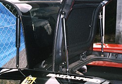 このダンパーの長さは全開時に約50cm。ダンパーとドアはボールジョイントで結ばれており、ダンパーが縮みながらドアが閉まるという一見単純だが実際は複雑な動きをする部分に対して有効に働いている。このダンパーはハッチバック車のダンパーとは比較にならないほどの極めて強力なものが使われている。というのは重いドアを非常に短い支点から押し上げる必要があるためだ。そのため、このダンパーは約2年でへたってしまう。新品時はドアのロックをはずすだけでドアが自然に上へと開いていくのだが、それをすぎると手で押し上げない限り上へは上がらなくなるのだ。なお、へたったダンパーでさえ、人間の全体重をかけて押さえても圧縮することはできないほど強力なものが使われている。