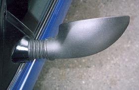 ノーマルは半球状で根元から一度前方へ盛り上がっているのに対し、このミラーはスラリと伸びています。