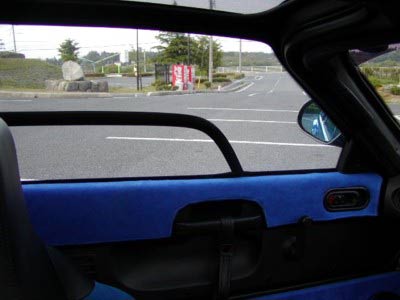 ドア内張りエクセーヌ張り(自作)あ、M3タイプミラーはこんなかんじで見えます。シートが一番うしろまでさげれれば、もうちょっとよく見えます(身長165のため)