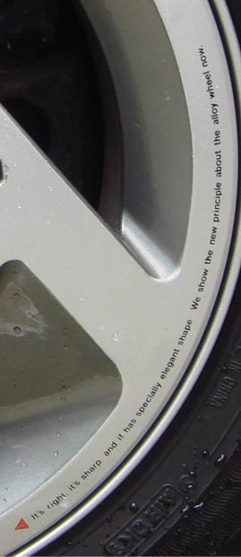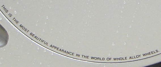 ホイールのリム部分には英語で何やら書いてある。拡大すると・・・