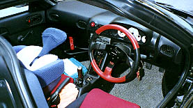 前オーナーによってステアリング、シフトノブ、オーディオが交換されていた。ステアリングは一見MS製に見えるがどこぞのOEM。現在は太股に当たって運転しにくいので、家にあった更に小径のパーソナル製に交換している。シフトノブはMS製。ベビーシートに2歳になる子供を乗せて「エイヤッ!」とコーナーを抜け、「パパ怖い〜やめてぇ〜」と注意されたことあり。(^^;)