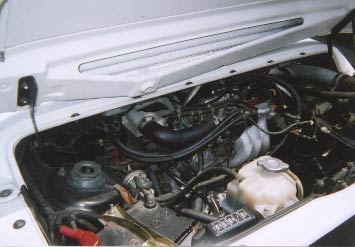 エンジンルーム(アーシング前)です。見づらいけど、エンジン奥にプッシュンRがあります。