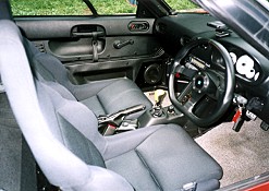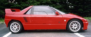 ところでAZを購入するきっかけはというと,あのあのあのサブローインターナショナルのイタリアンボディー(名前はベルリネッタ)を付けたかったからです。しかし、キットで100万で販売予定と発表されてから半年経った販売直前になって,取付け加工工賃でさらに100万かかると言われ断念(最初から言えー!!)。全額300万オーバーの軽自動車なんて!しかも中古で!! 今のところこの偉業?を成し遂げたお金持ちの方が4人おられるそうです(市川さんのところへオーナーからメールはきませんか?どんな人が乗ってんだろう。)。御殿場のギャラリーアバルトで実写を見たのですが,写真で見るよりエッジの効いた(フェンダー廻り等)力強いデザインをしていました。また軽枠をオーバーするだけあってフェンダーの張り出しがすごく,ひと回り以上大きく見え,まるで別の車のようでした。今でも欲しいけどぉぉ(ToT)・・。結局,この楽しすぎる車を手放す気にはなれず,またノーマルのまま乗るのもおもしろくないので,'97/7にマッドハウス仕様とあいなりました。めでたし、めでたし・・