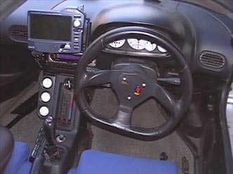 純正ステアリングはちょいとチープな為、ビクトールのコルサを装着。ホーンボタンも気に入らない為、LONZAとか言うブランドのホーンパネルを装着し、F1風に。