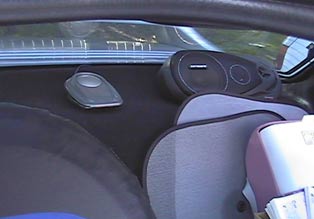 スピーカーもKENWOODをリアトレイ?に、スピーカーの間にあるのはLAUDAのテレビ用ストリームアンテナ