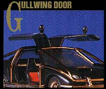 本物でも玩具でも最大の売りであるガルウイングであるが、左右ともちゃんと開いてくれる。残念なのは、ドアを全開したとき本物のAZ−1ならばまっすぐに立つのだが、このモデルでは若干ねていることだ。やはり模型ではこれが限界なのか。またコクピットの中も結構本物に近い。メーターが白地になっている部分まで再現しているのはすごい。