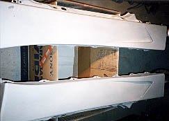 それから樹脂を塗りガラスクロス、マットを貼って形をしっかり作っていきます。これから貼ったり、削ったりの作業を何回も繰り返ししっかりした形を作っていきます。