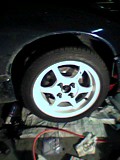 はじめましてティンコと申します。青森県民です。AZ−1を乗り(壊し)続けて、はや8年になります。最近、意味もなくブレーキーローター・ハブの交換をしました。ついでに新品のホイルも装着してみました。携帯のカメラしかなかったので写りがよくないですが、写真を見てノーマルとは違う何かを気づいてくれれば幸いです。(ちなみに使用部品は全部純正です。)