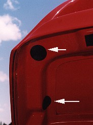 ![]() | マツダスピードバージョンは、「車体番号が何番から何番まで」というふうになっていない。倉庫に眠っていたノーマルのAZ−1を無作為に引っぱり出して改造したためだ。また外販パーツは単独で市販されたため、ノーマルのAZ−1購入後にマツダスピードバージョンへ変更することもできた。従って、「なーんちゃってMSV」も存在する。その見分け方だが、本物のMSVは、写真のようにリアウイングの取り付けの際にあけた穴を、黒くて丸いシールでふたをしている。ただしこの見分け方では、例えば本物のMSVを購入後全塗装した場合等、このシールがはがされている可能性があるため、完璧な方法ではない。 またMSV発売第2段以降のものに限り、マツダスピードのロゴスッテカーが貼ってある。文字の大きさが縦4cm長さ45cmの限定品。これも本物との見分け方だ。 |