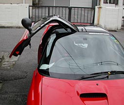 ドアはダンパーの力で上に跳ね上がるようになっている。しかし、そのダンパーが弱ってくると、完全に上がりきらず途中で止まったり、上にあげても自動的に降りてくる。中古のAZ−1のドアダンパーは抜けているものがほとんどであるため、交換してもらおう。