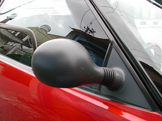 ノーマルのものは、灰色(無塗装)で楕円形をしている。M2 1015等のミラーの丸い部分は本体色に準ずる。基部である三角のところは無塗装。