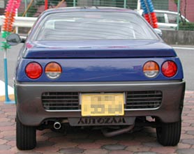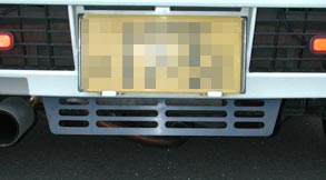 ノーマルのリアバンパーは写真に示す通りである。改造されている場合は、メッシュ部分が切り取られていたり、金網がつけられたりしている。