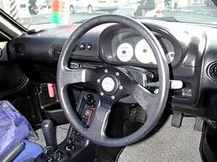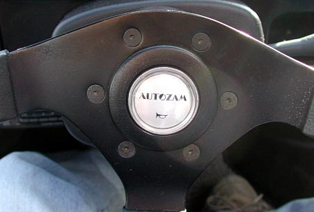 ノーマルのステアリングはホーンボタンの所に「AUTOZAM」と書いてあり、ステアリングの中心がオフセットされている。純正オプションのMOMO製ステアリングもある。