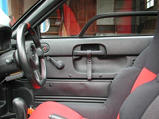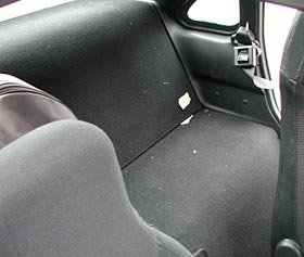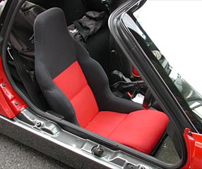 写真のようなバケットシートがついており、助手席側はシートのスライドさえできない。なお色は赤/黒、青/黒の2種類である。