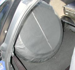AZ−1はスペアタイヤが室内にある。室内にない場合はフロントボンネット内に移動されている。なおスペアタイヤには写真のようなカバーがつけられている。