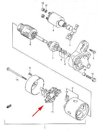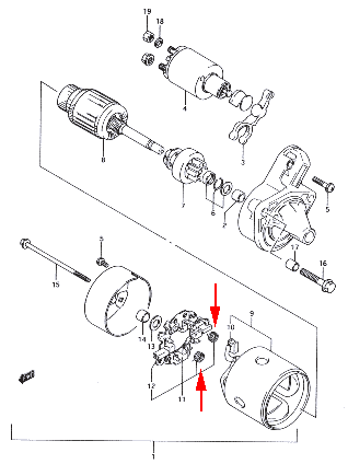 ワークスの場合、ブラシのところにバネが入っているが、AZ−1には入っていない。後は同じ。なぜAZ−1の場合バネが不要なのかは不明。
