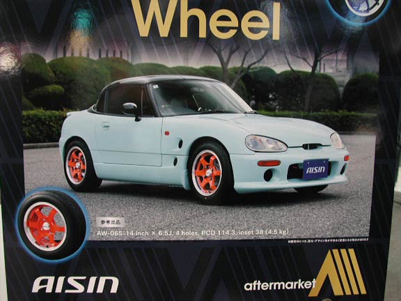 カプチーノの写真がある。履いているのはアイシンのホイール。サイズは14インチでPCDが114.3だ。