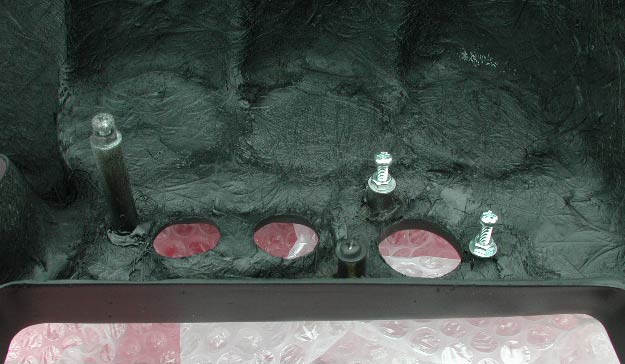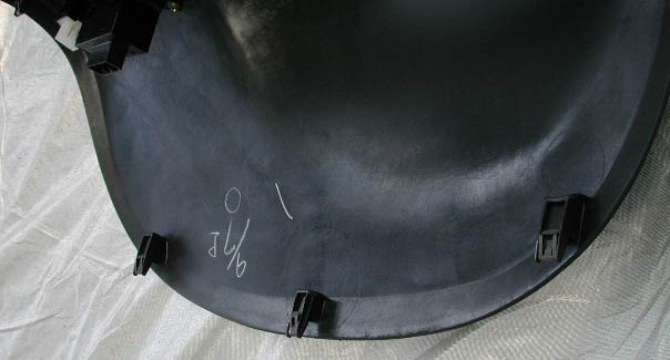 嬉しい配慮がこちら。写真左はメーターフード上面の、右はコインボックス近くの表面。左の方が荒れていることがわかるだろうか。これはフロントガラスへの映り込み防止のための処置。私はかぶせるタイプを使っているが、表面処理がされていないため、太陽と車の位置が悪ければ、結構映り込みがひどい。
