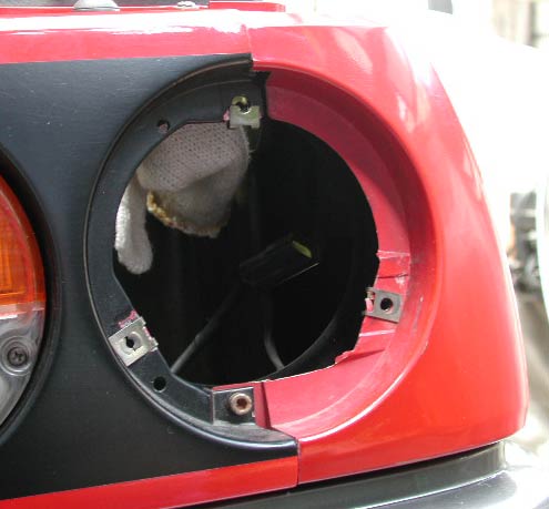 外の見た目は良いのだが、外から見えない部分が残念なことに・・・わかりにくいが、純正コンビランプが入る穴を跨ぐようなかたちでステーを掛けて固定する必要がある。