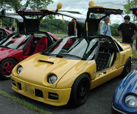 やっちさんのAZ−1。いろいろ見所があった。まず紹介したいのがヘッドライト。
