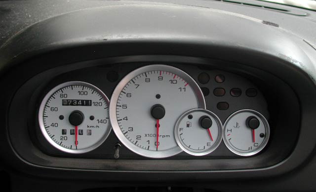 ここで、CARXIONE製メーターカバーを紹介しよう。安っぽいAZ−1のメーター文字盤の上に重ね置きすることで、見た目を改善する優れもの。