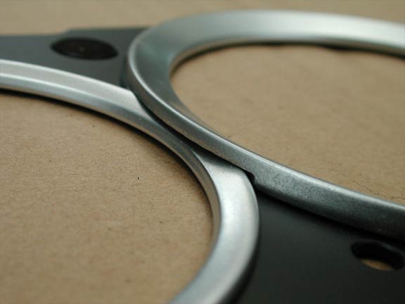 写真左が燃料計、右が水温計。2つのリングの合わせ面だけ、少し小さくなっている。