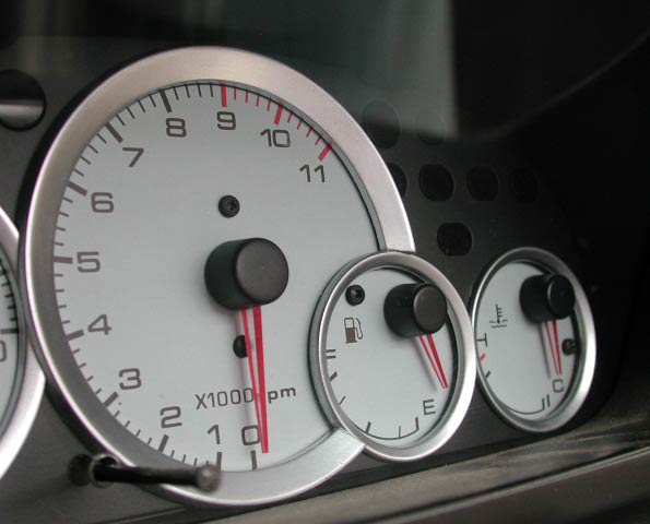 写真ではわかりにくいが、このメーターカバーを付けると燃料計と水温計がタコメーターより一段奥に配置されているように見えてくる。メッキリングが付くという見た目の改善だけでなく、メーターをより立体的に見せる効果もある。