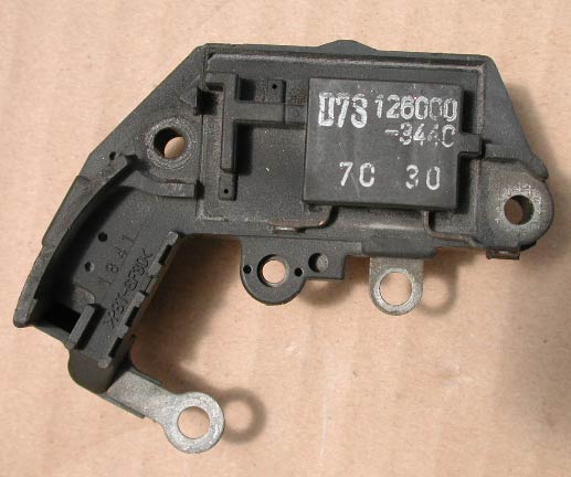 一般的には、レギュレータが壊れると「割れる」「中身の樹脂が出てくる」と言われている。今回の購入直後のオルタネータは、壊れかけのレギュレータが組み付けられていた可能性が高い。このオルタネータの寿命はそんなに長くはなく、雨水の侵入によって今日・明日壊れてもおかしくない状況である。