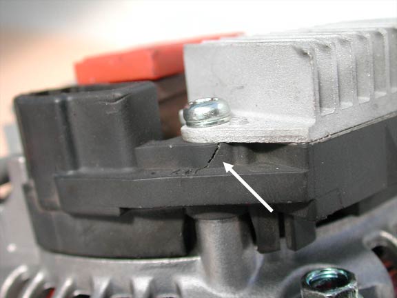 レギュレータのネジは新品に交換されているわけだから、2カ所のクラックを見落とすかねえ。そうでないならば「車に取り付ける前のリビルトオルタネータを分解するバカはいない」と、高をくくっていたのだろうか。いずれにせよ、企業姿勢が問われるべき事例だろう。