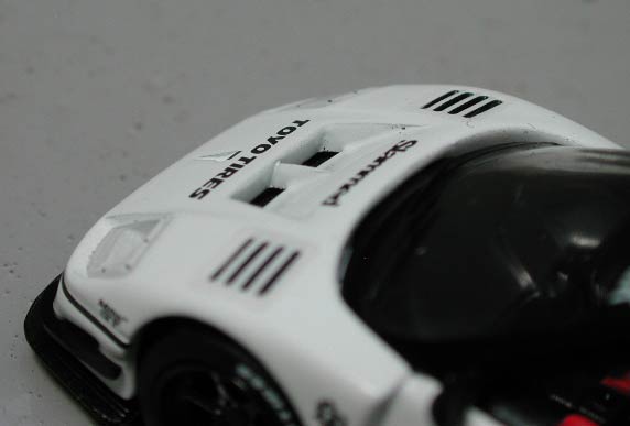 前回、エアインテークの黒塗り部分がおかしいと書いたが、その他の部分を見ていく。もう1つの大きなエアインテークは、開口部がちゃんと黒塗りされていた。ワイパーもこんなもんかな。