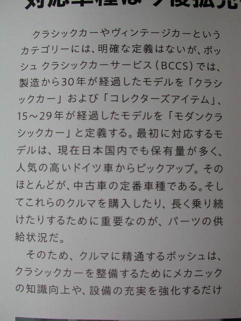 BCCSとある。これはBosch Classic Car Serviceのことで、最初に紹介した「ボッシュ クラシックパーツリペア」とは表記が異なっている。が、内容は同じだ。