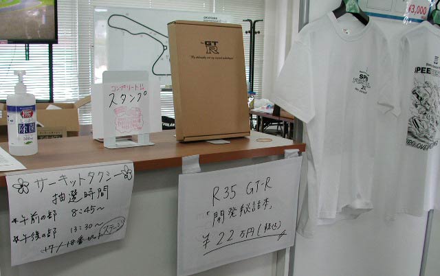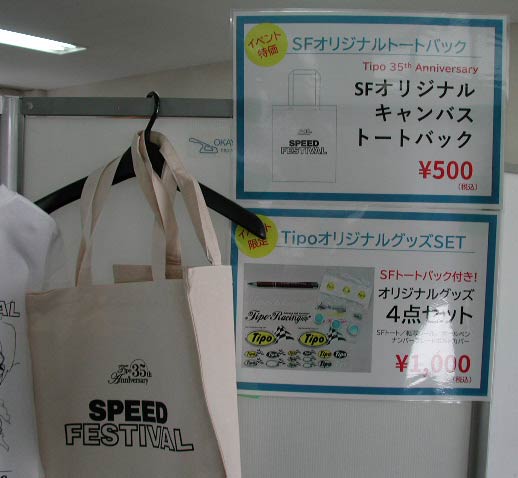 前頁で紹介したミニカーをもらうには、ゴールである事務局に行く必要がある。その事務局には今回のスピードフェスティバルのグッズも売られていたので紹介する。